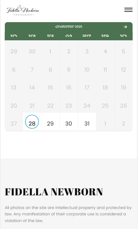 Fidella Newborn-ը ԱՄՆ-ում գործող լուսանկարչական ստուդիա ա: Այն մասնագիտացված է նորածինների, ինչպես նաև երեխաների և ընտանիքների լուսանկարչության մեջ: Ստուդիայի համար մենք ստեղծել ենք գեղեցիկ կայք, որն ամբողջությամբ ներկայացնում է նրանց գործունեությունը: Կայքն ունի նաև ամրագրման հնարավորություն:
